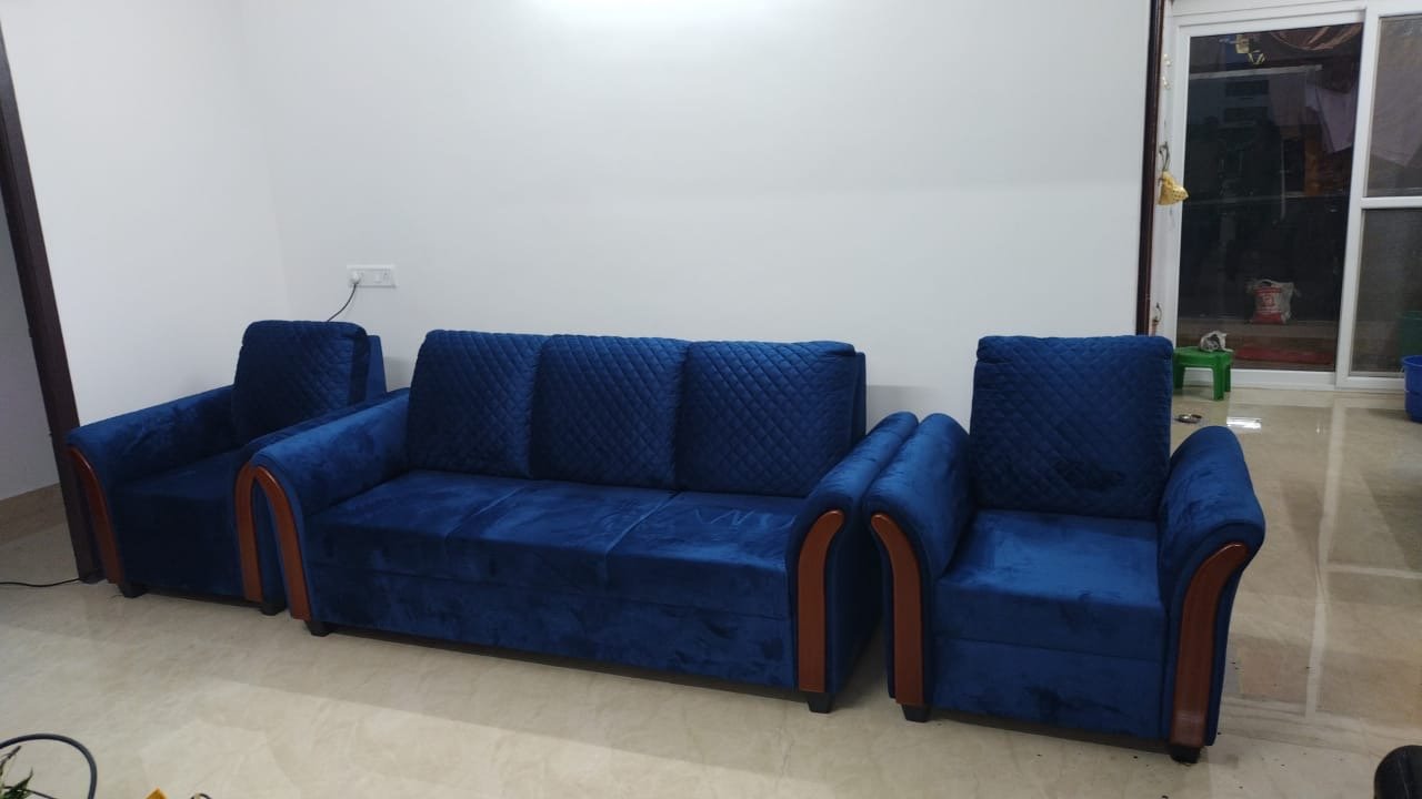The Regal Blue Tufted Sofa Set is a luxurious and stylish seating solution designed to add elegance and comfort to any living space. Crafted with high-quality blue fabric, this sofa set features plush, tufted cushions that provide both style and support. The arrangement includes a three-seater sofa flanked by two single-seater armchairs, offering ample seating for family gatherings or entertaining guests. Its vibrant blue color adds a bold and sophisticated touch to the room, making it versatile for various interior styles. Ideal for those who seek both functionality and aesthetic appeal, the Regal Blue Tufted Sofa Set is a timeless choice for enhancing your home’s decor.